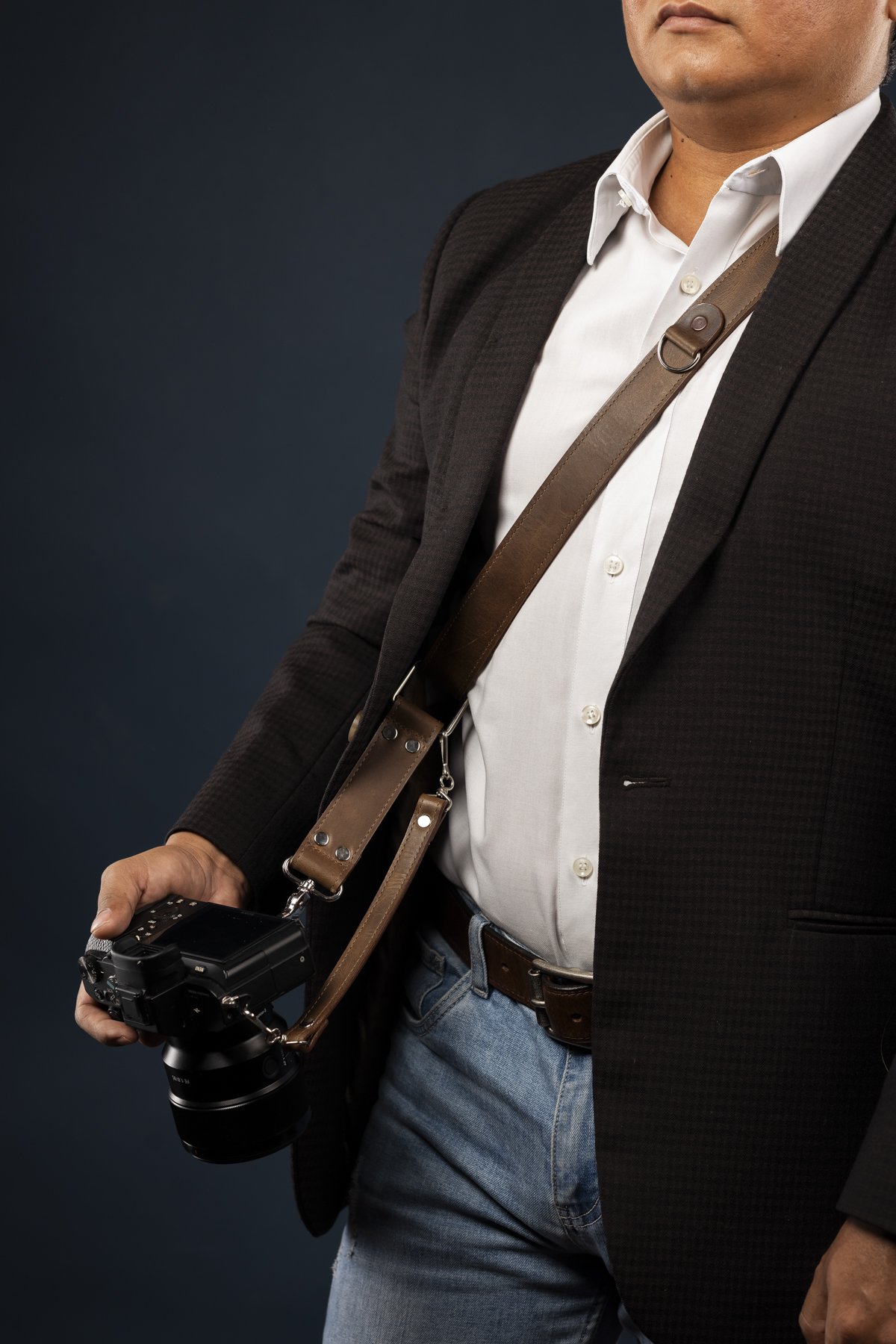 INCLUYE: Correa de cuero, tornillo universal para todas las marcas de cámaras profesionales con sus respectivos mosquetones.